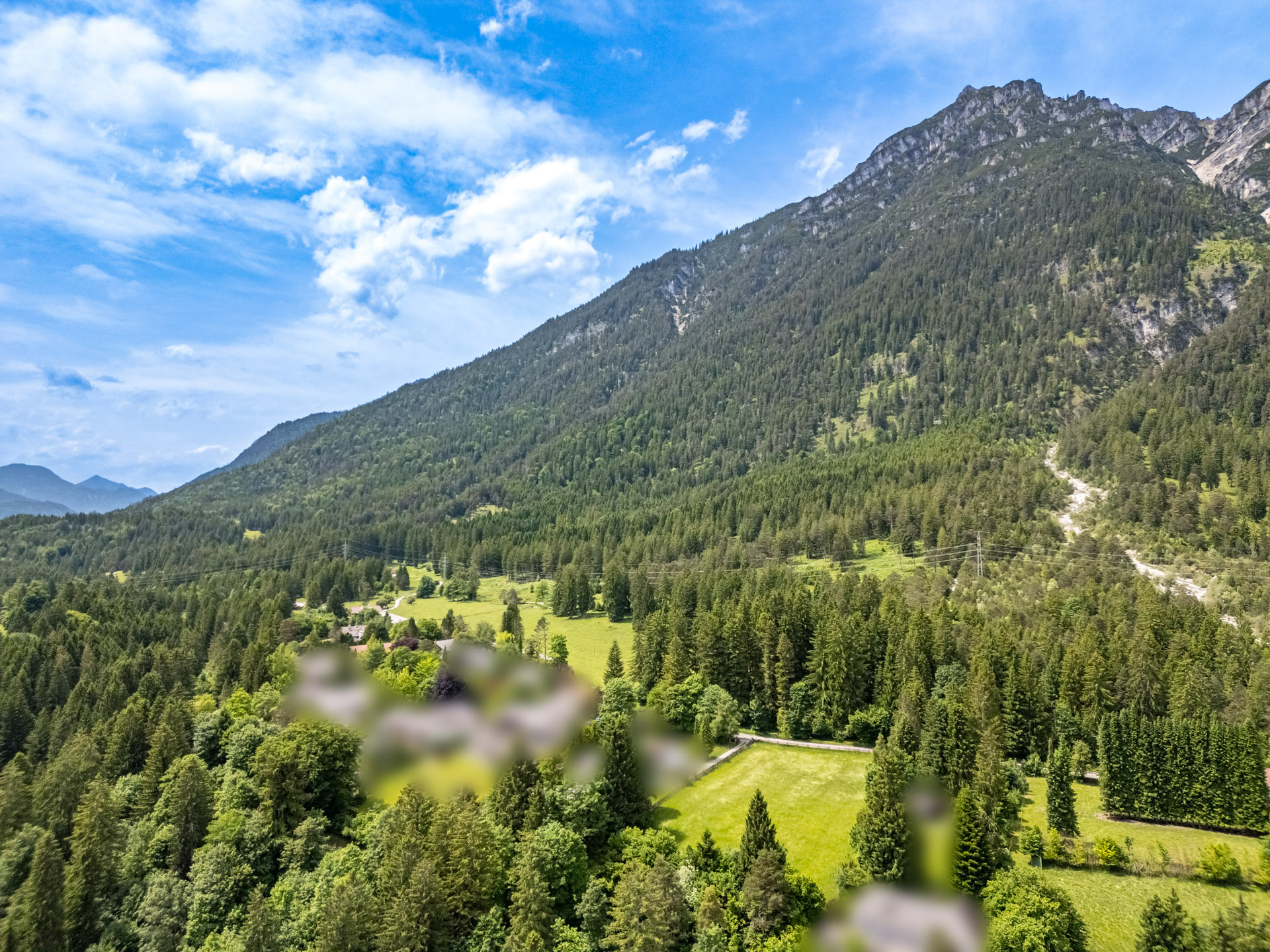 Das, was dieses Grundstück jedoch wahrhaft außergewöhnlich macht, ist der spektakuläre Blick auf die umliegende Alpenwelt. Von hier aus genießen Sie ein täglich wechselndes Panorama auf die markante Alpspitze, den eindrucksvollen Waxenstein und den majestätischen Wank. Jeder Blick aus dem Fenster wird so zum Postkartenmotiv – ein Schauspiel der Natur, das sich immer neu inszeniert.