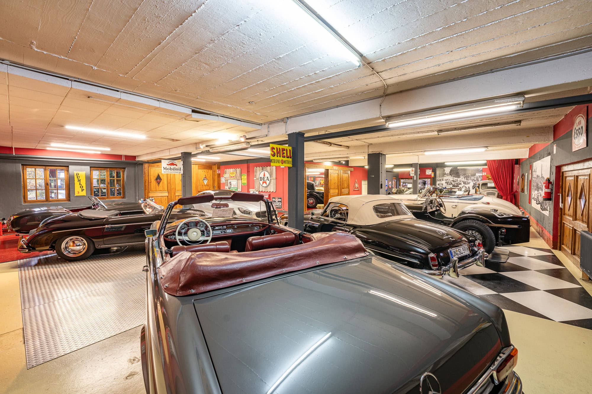 Ergänzt wird das Anwesen durch eine Werkstatt mit Hebebühne, großzügige Nebenflächen, 6 Carports, 10 Außenstellplätze und drei separate Zufahrten.