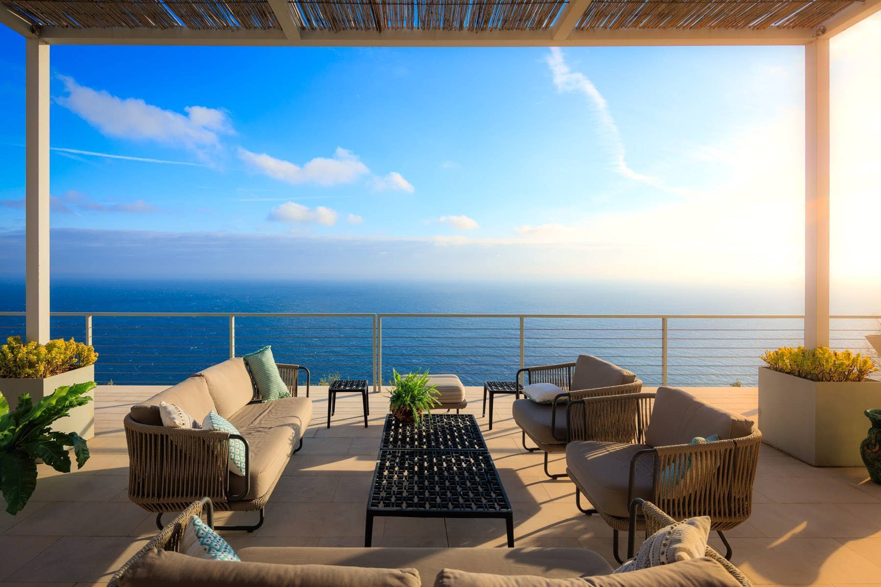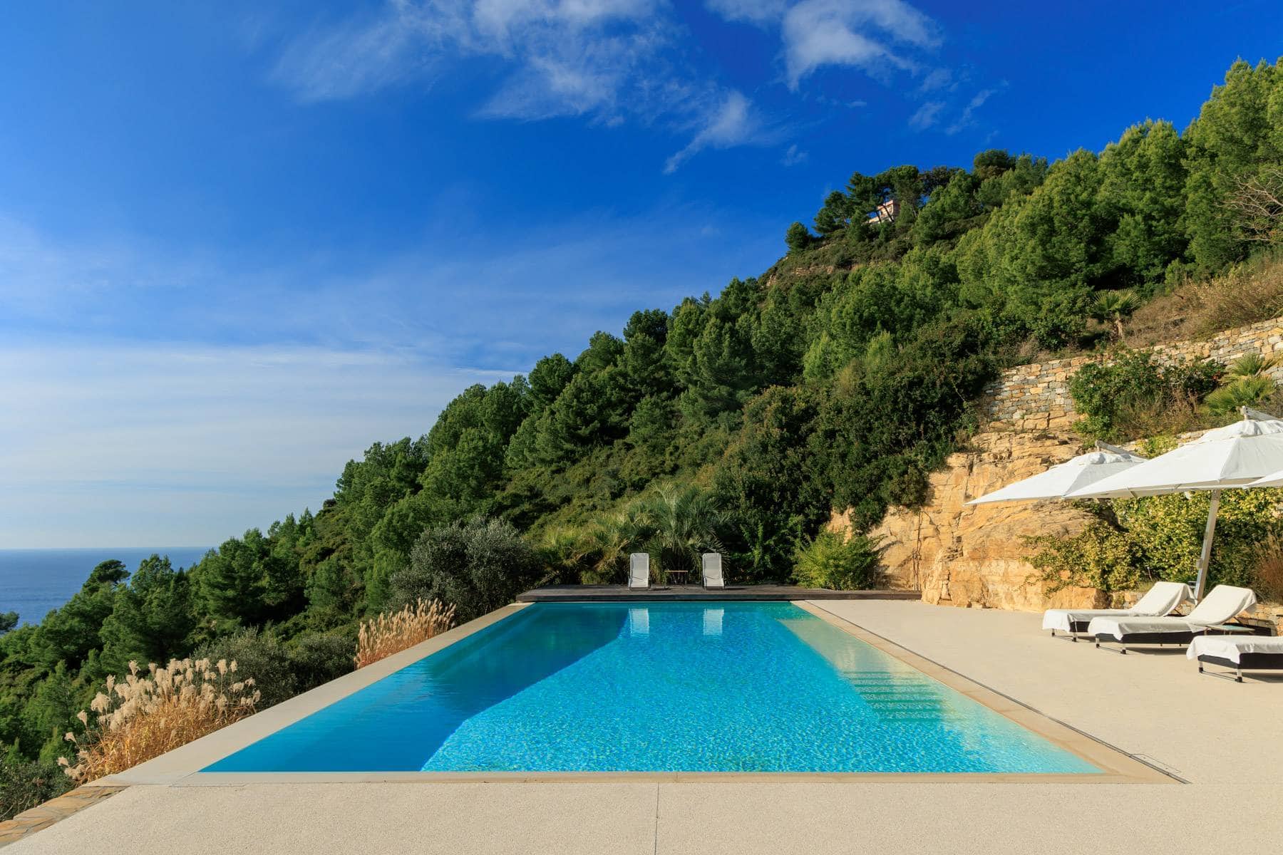 Auch der Außenbereich ist ein echtes Refugium: Eine große Terrasse und ein privater Pool laden zum Entspannen mit Meerblick ein. Die nachhaltige Ausrichtung der Villa zeigt sich in 80 Photovoltaikmodulen, die bereits den Tagesbedarf decken und mit Speichersystemen zu vollständiger Energieautarkie ergänzt werden können.