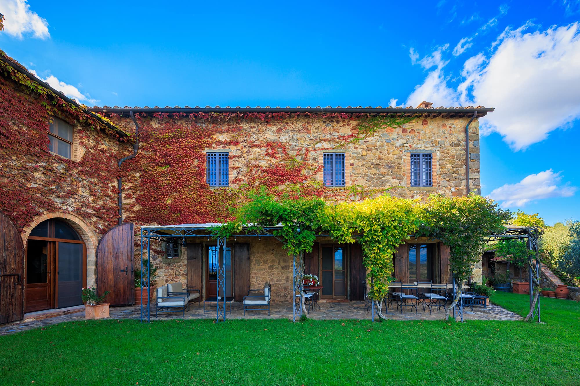 Dieses charmante toskanische Anwesen wurde 1998 komplett renoviert und umfasst drei Bauernhäuser mit einer Gesamtfläche von ca. 920 m² (9.902 sq ft), einschließlich Lagerräumen, einer Olivenmühle und einem Carport.