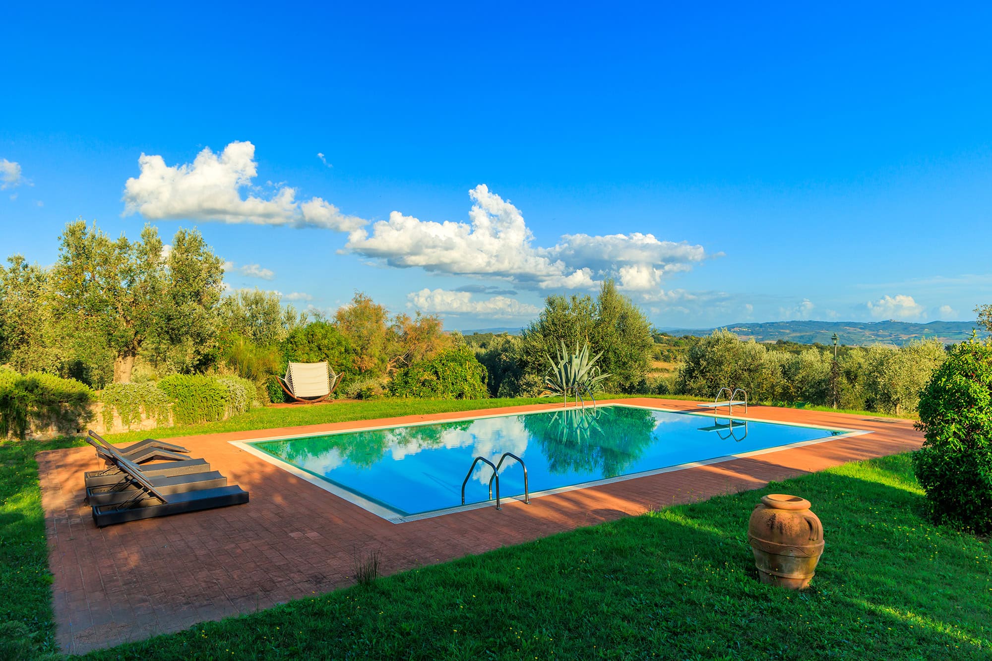 Das 9,3 Hektar große Anwesen umfasst Weinberge, Olivenhaine mit ca. 1.000 Bäumen und angelegte Gärten mit einem Pool – ideal als Privatresidenz oder als Investition im Gastgewerbe.