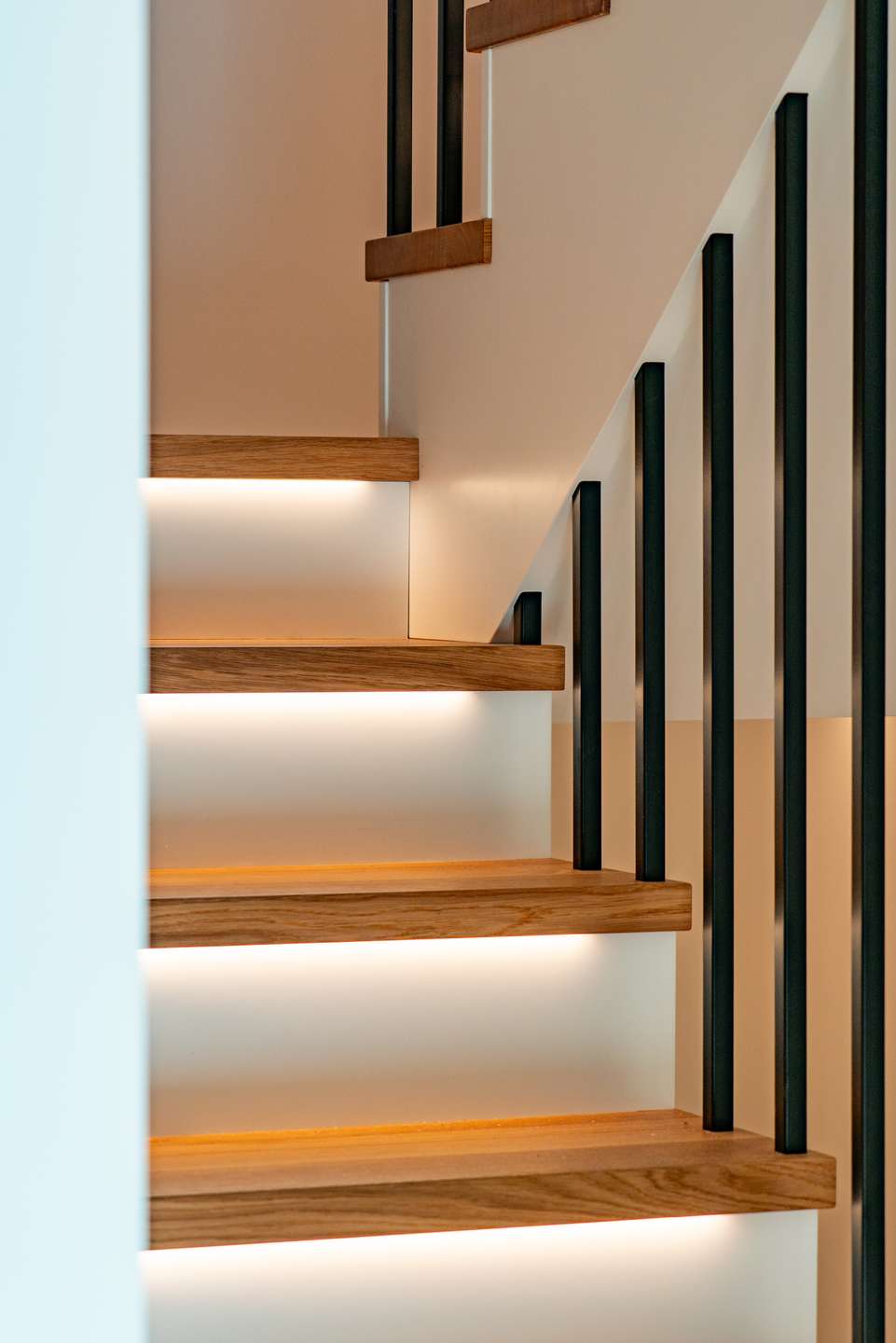 - Treppenhaus mit Glasdach und Designtreppe mit beleuchteten Stufen