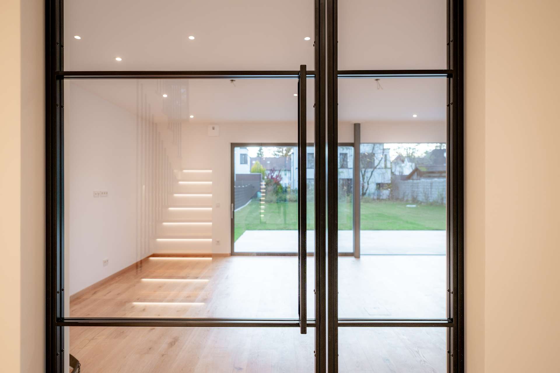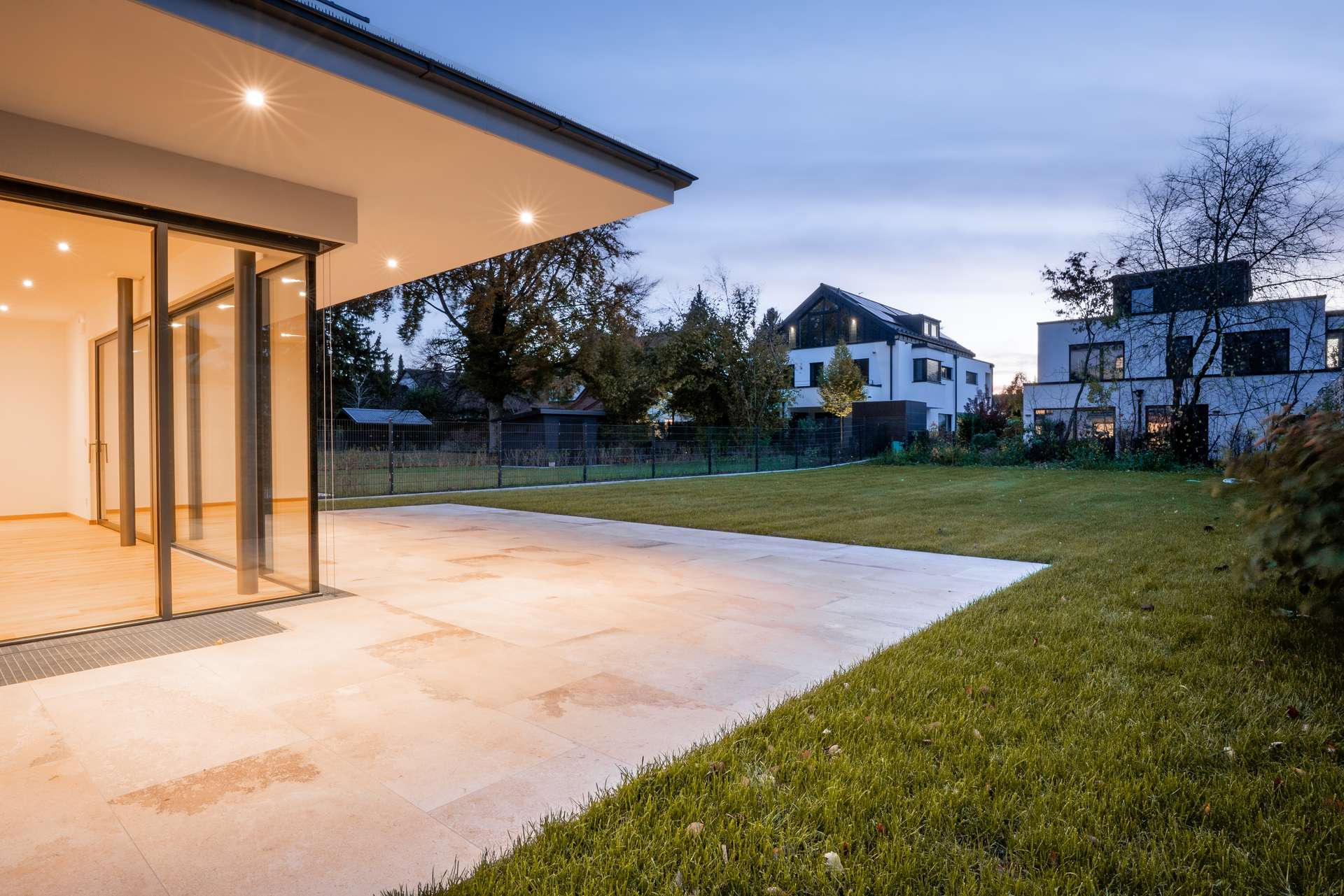 - Großformatige Fensterfront mit profilfreier Eckverglasung zur Terrasse